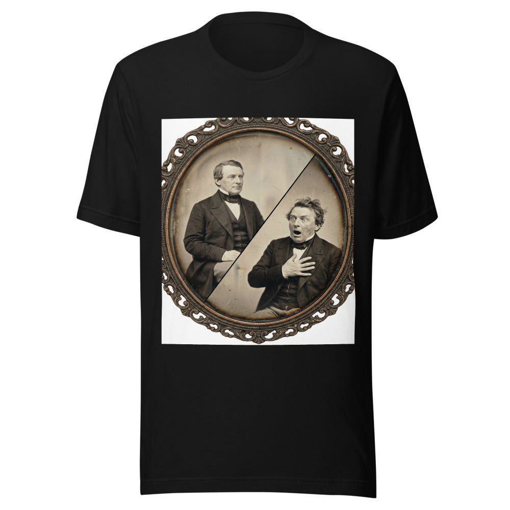 Archival daguerreotype documenting subject reaction to neutral audio stimulus, captured 1854. Left exposure shows baseline composure. Right exposure documents physiological transformation upon perceived commentary bias. Both exposures authenticated. No digital manipulation detected.